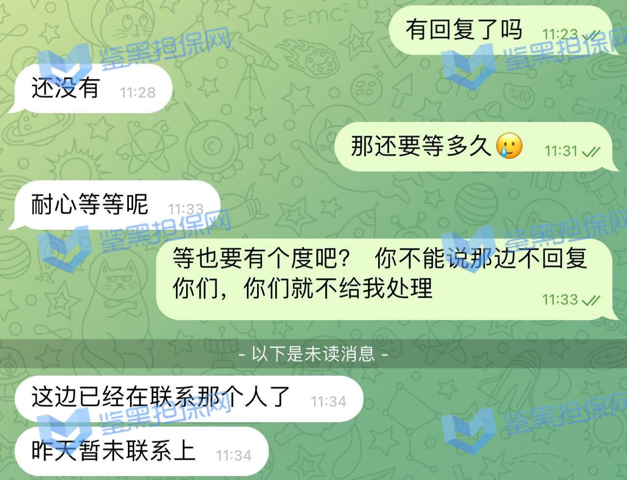 3、鉴黑维权专员联系开云相关负责人跟进该问题,对方一直让耐心等待,未积极联系第三方找打款人处理,也没有具体时间。