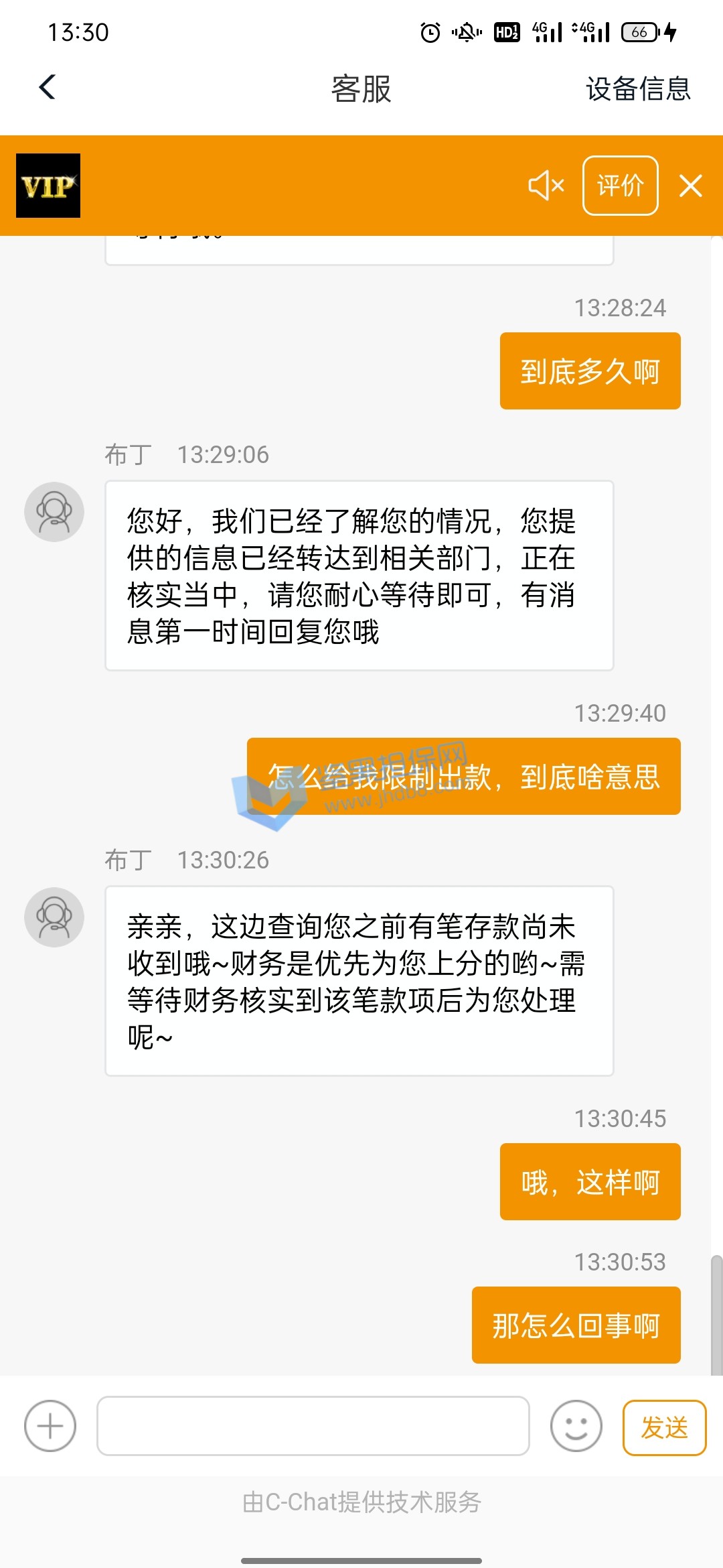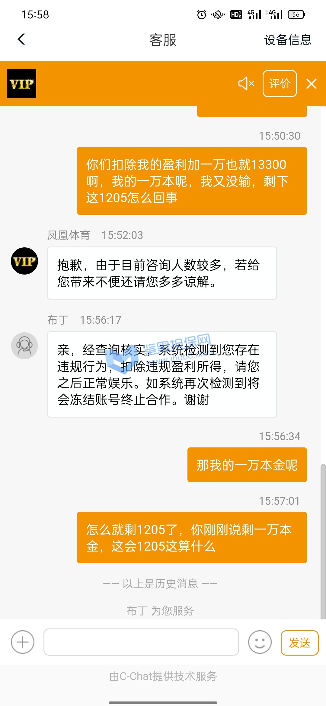 我10月11号支付宝转银行卡存款10000在平台,到账了后我立刻就玩了,途中我支付宝给我发信息这笔款退回了,也就是说没成功到他们那边,那他们给我这10000分怎么弄得,还显示存款成功,我心里面美滋滋的,就没管也没去找诉说,毕竟得了便宜了,等打完流水当时盈利了差不多3645提款显示如图1被限制出款,我就去问客服,客服给我的回答是财务没收到款,优先给我上的分,等财务收到了会处理提款通道!我心里一想这事也没普啊,就没想着提了,也没想过补回了,就去转pg电子玩,结果出乎意料出了很多免费,我就出了免费就退出,出了免费就退出,差不多有三五个这样的免费,一百一转的,当时台面就剩1205,我想的是这么多免费随便一爆也好几万了,存一万补回他们给我优先上的一万就好了。当时也有疑虑还去咨询了我的线下彩金福利,他也说存回去补上就能正常存取了,由于不确定免费到底能爆多少,万一爆不到一万,我存了有啥意义,我就再存前去免费里放了分,一看有12000了,赶紧偷了我妈手机存款完后删除转账记录补上提款赶紧还回来吧,存上后客服刚开始说扣除盈利只留一万本金,我当时就蒙了,想想还有那么多免费,留一万就一万吧,结果没一会直接给我留了1205,我问为什么也是莫名其妙一大推我看不懂的借口,当时心里还是想着只要能正常取款反正有免费在那藏着,只要能给我出,我就不亏,也没多理论,就把台面的1205赶紧试着提款一千,结果没一会到账了,我心里还有点开心,也紧张,就想着应该稳了,就去免费里转,转了一下就爆了一千,我就赶紧又把1210一下子全提了,当时在紧张焦急的等待十来分钟后也到账了,当时台面没有分了,我心想一分没有拿什么赢,就又存进去两百随便打了几下再去放分,这次放了9300提款8000,留了1300在余额,结果就遇到一小时不到账,我就问客服,客服让我提供手持身份证银行卡并写日期的白纸拍照给他们说什么身份验证,我想想也有道理,当时提款心比较急切,就按他们的提交了,提交后来了句要审核七天,我一听就慌了,当时还是相信他们的,毕竟凤凰平台我玩了308天了在这总体肯定是输,直到今天我想登进去看审核进度,才发现设备存在风险,无法使用本平台。下面图都在下面,请鉴黑网帮我维权,被我妈发现我就完了,我给你们跪谢了!!