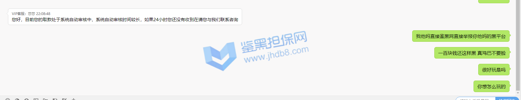 我是个线下低频彩庄家,主营线下福彩3D与体彩排列三的彩民投注,由于个人实力有限,每天会将一部分彩民投注打到盘上,本人保证所有注单都是真实彩民投注! 很早就有这家台子客服的微信,但没有尝试过投注,今年春节前,他家客服联系我,想合作,当时我明确表示低频彩由于玩法杂乱流水低赚钱慢,是一种在网上不受待见的彩种,但对方表示没关系,只要彩票站能买的,他那里都可以投注,于是就拿出了一部分投注到开心100了,也就发生了后面的不愉快! 4月4日晚,我正常投注,开奖后提款,很快就显示提款成功,但直到第二天都没有到账,客服以三方延迟为借口推脱,还诱骗我继续充值,但我没有继续上当,后来经过交涉,客服承认黑我钱,因为我赢了,他要降低损失,一共黑了我73360并注销了我的账号,希望大家擦亮眼睛,不要被这种黑台子诱惑,说的再多保障都没用,真黑你时候,你是找不到人的!另外要说明的是,由于低频彩封盘与投注时间非常紧张,所以本人经过与客服协商并得到他同意后申请了两个账号进行投注,不然忙不过来,每天我投注官方玩法,我员工投注传统彩玩法,绝非同平台对打套利,所有投注项目全部提前与客服协商过并得到了他的同意!恳请平台帮忙维权!