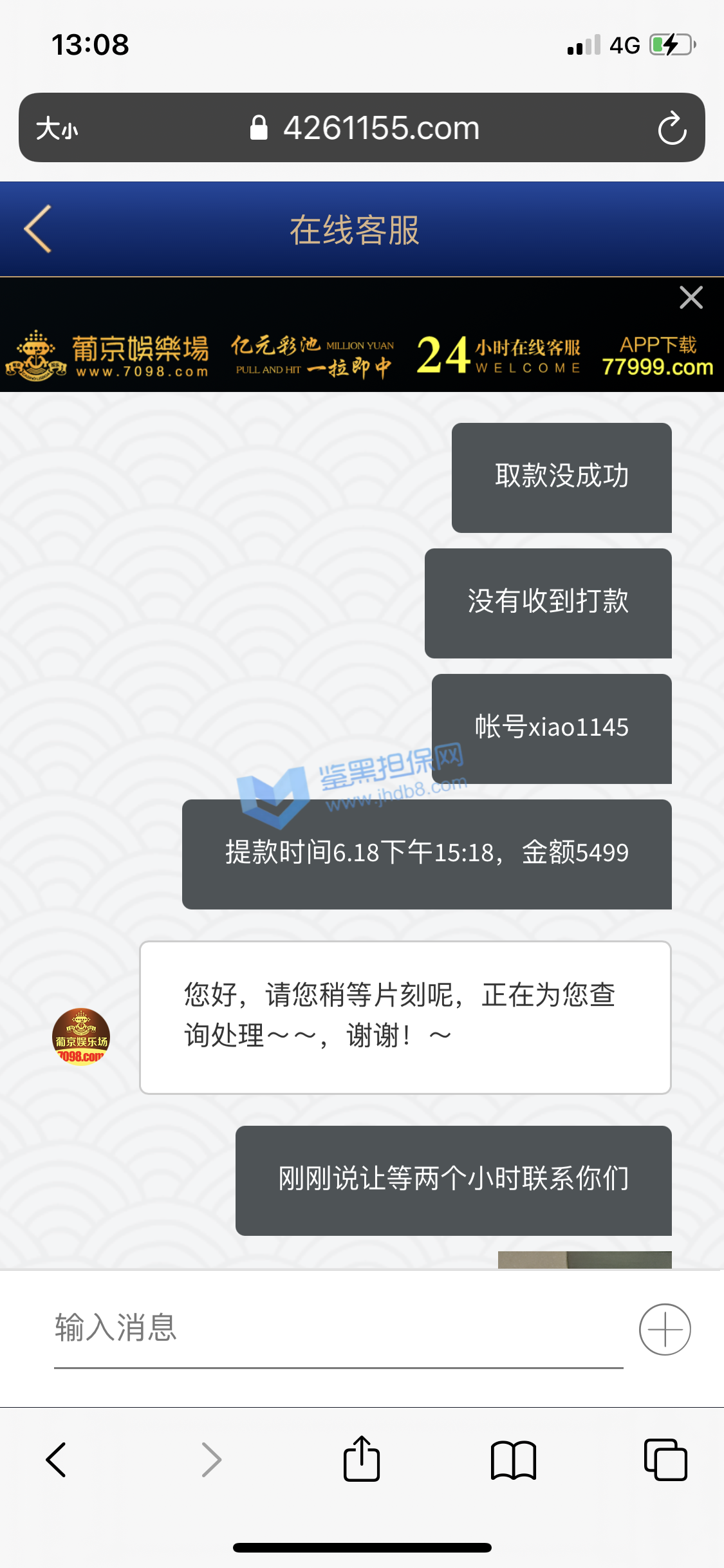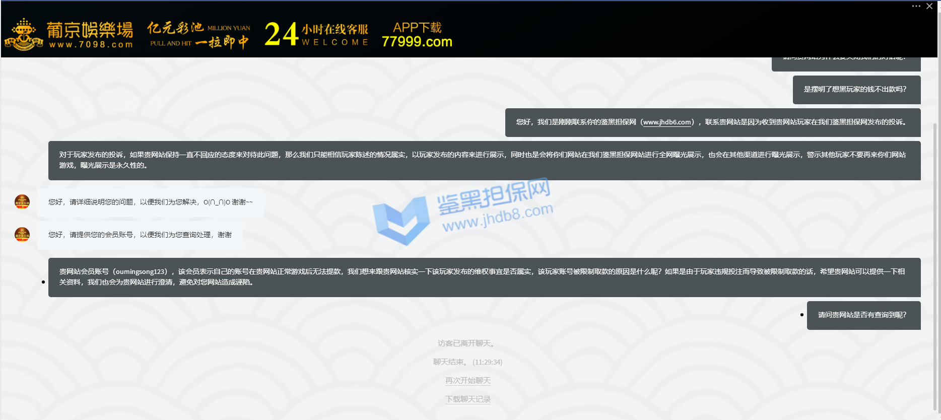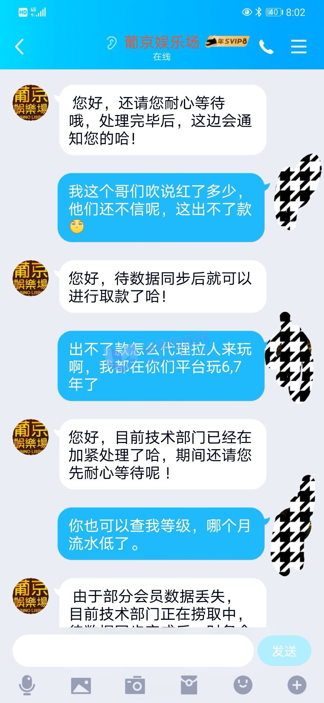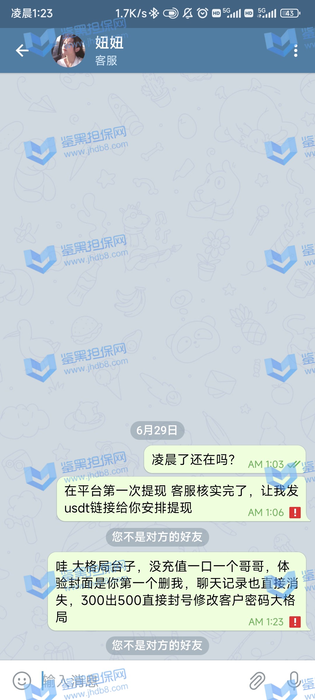 本人账号 ey888888 在6月27日注册的账号,马上就收到了电话回访,说让我参加首存50%,我充值了100领了50输掉了,次日6月28又收到客服电话邀请我再来参加50%,这次充了300 送了150,提现501,先是接到核实银行卡和个人信息,最后说核实完毕,由于我是第一次提现需要把虚拟币的地址发给POP软件的专员,POP这个软件是属于拉黑删除直接自动清空聊天记录的,本人有幸录过充值的视频,请看图1-图3 是和专员客服的聊天记录和充值记录,本人能提供3仅3天的3次的电话通话录音证明是他们电话特邀邀请充值的,本人的确在鉴黑担保网查过他们的官网没有记录当我打开pop聊天软件找专员的时候发个消息在吗聊天记录直接清空了还显示对方不是你的好友,当我重新登录平台的时候显示密码错误,直接修改客户会员的登录密码,找客服就说什么电子套利不做任何解释,本人仅3天都是只用流量进行游戏,玩了MG电子 和PG电子,本人只有一个账号 名下只有一张银行卡,没充值之前一口一个哥哥发那个语音夹子的说,还劳逸结合,有空再来,赢钱了提现直接相当于封号了,次平台多个POP专员 XX001 - XX0012 目前我知道有12个专员XX+后面的数字 001-012排序过去的,估计追回渺茫了,除非鉴黑团队能联系到比客服还高级别的管理。