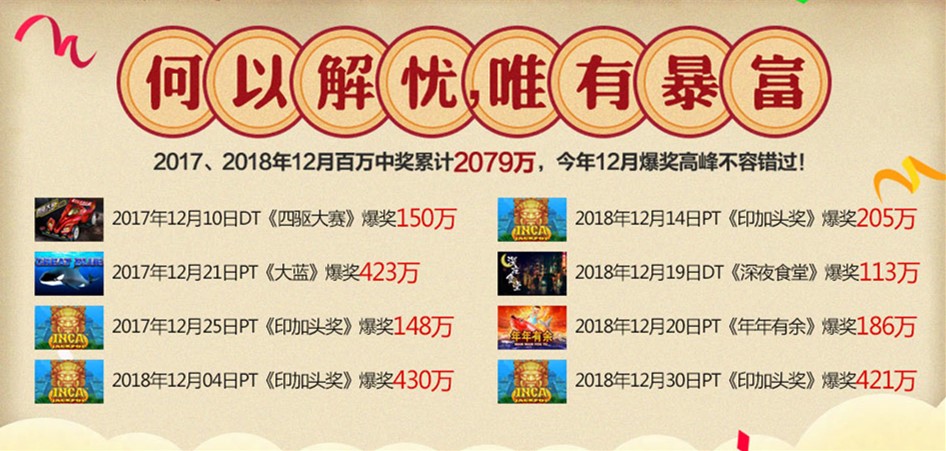 12月4日-6日期间,会员在DT老虎机平台进行游戏,但凡中得游戏奖池且奖池中奖金额超过50元以上,即可获得88元活动彩金,申请次数不限。