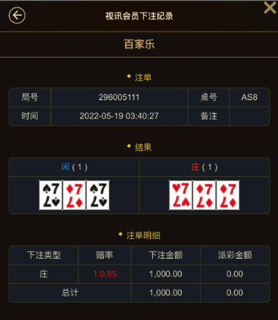 小琪不与大家争论现场是否会作假。以AG真人视讯-百家乐,买庄、闲(猜两边的牌哪边会更大)为例,不管您在哪个网站游戏,只要玩的是那个AG直播房间,同一时间开奖一定是相同的,就算现场可以对总投注少的一边进行作弊开奖,对于我们单个玩家来说买对的概率同样是1/2(不考虑和的结果)。