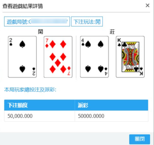 若二珠路中出现“闲闲”,则在下一局选择下注“庄”。