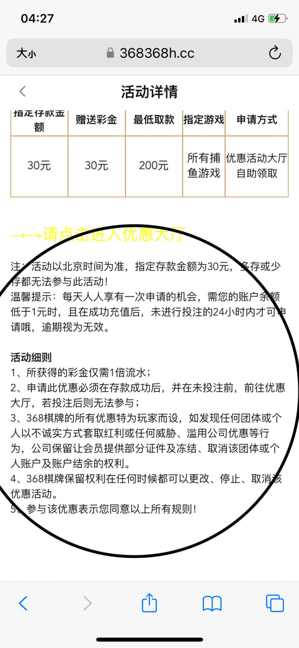 每天充值裸打,捕鱼博大也是最近一个礼拜才申请的,前天30加30博大无缘无故被增加100倍流水,找客服找了半天说派菜操作失误才处理完,处理完了提了200。中途又充值裸打了输了,今天申请30加30又被恶意增加30倍流水,问理由什么都给不出来,然后客服直接挂断聊天页面,客服名字叫美琳,368应该是准备跑路了,在玩的朋友千万别充值了,纯纯黑台