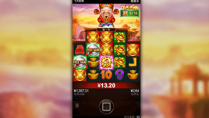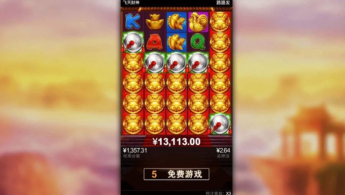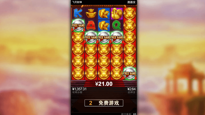 进入免费游戏后,小哥就凭藉自己超群的运气,以及「飞天财神」的特色,在免费游戏中,只需要由最左至右连续获得2个以上,就可以再获得3场免费游戏